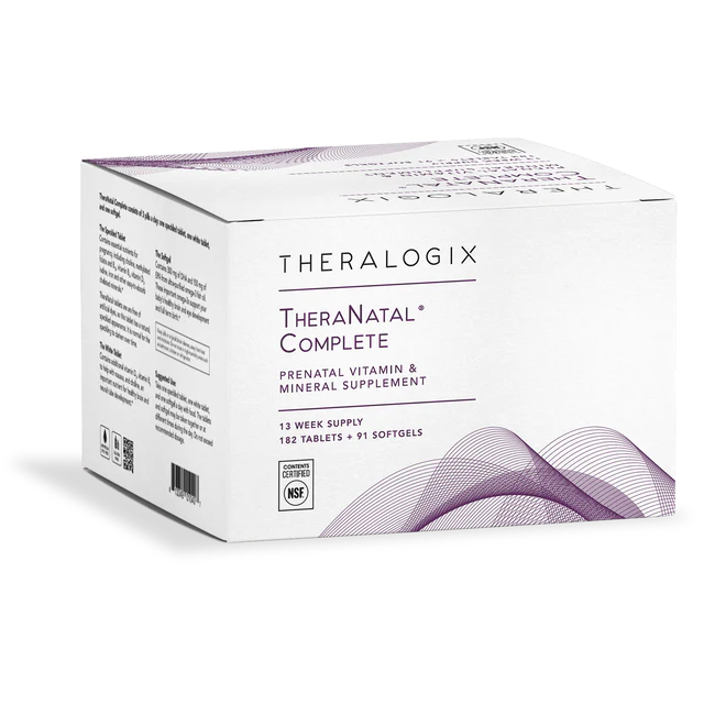 TheraNatal Complete is our most comprehensive prenatal vitamin, formulated with essential nutrients to both nourish your body and support your baby’s growth.*
